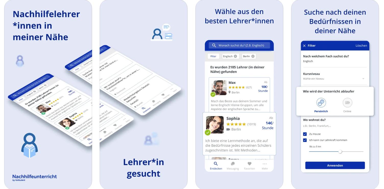Plattformen wie Nachhilfeunterricht verbinden digitale Lern Apps für Grundschüler mit der Möglichkeit, Online- oder Präsenznachhilfe flexibel zu nutzen. So können Kinder nicht nur spielerisch mit Lernapps üben, sondern bei Bedarf auch gezielt Unterstützung durch echte Lehrkräfte erhalten – entweder bequem von zu Hause aus oder direkt vor Ort. Diese Kombination macht Lernapps für Grundschüler zu einer besonders wirkungsvollen Ergänzung des schulischen Lernens.